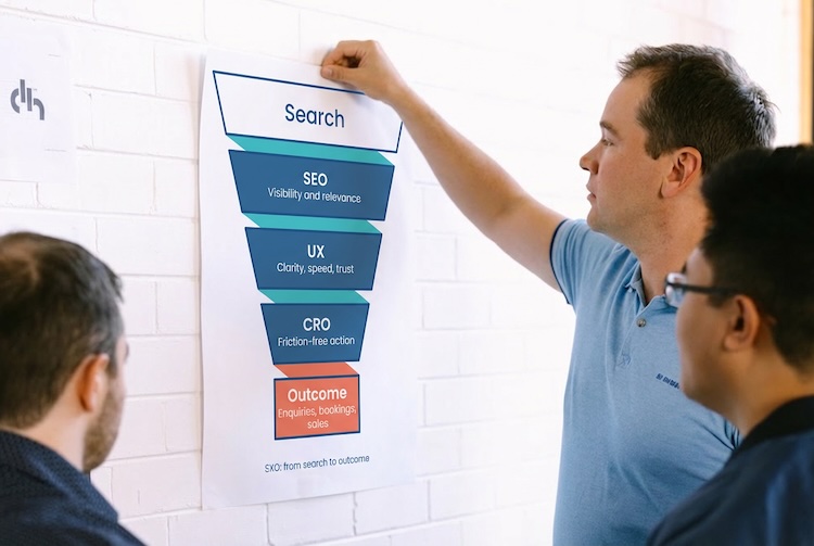 Search experience optimisation is the practice of improving the full journey from a Google search to a real outcome on your website (like an enquiry, booking, call, or purchase).